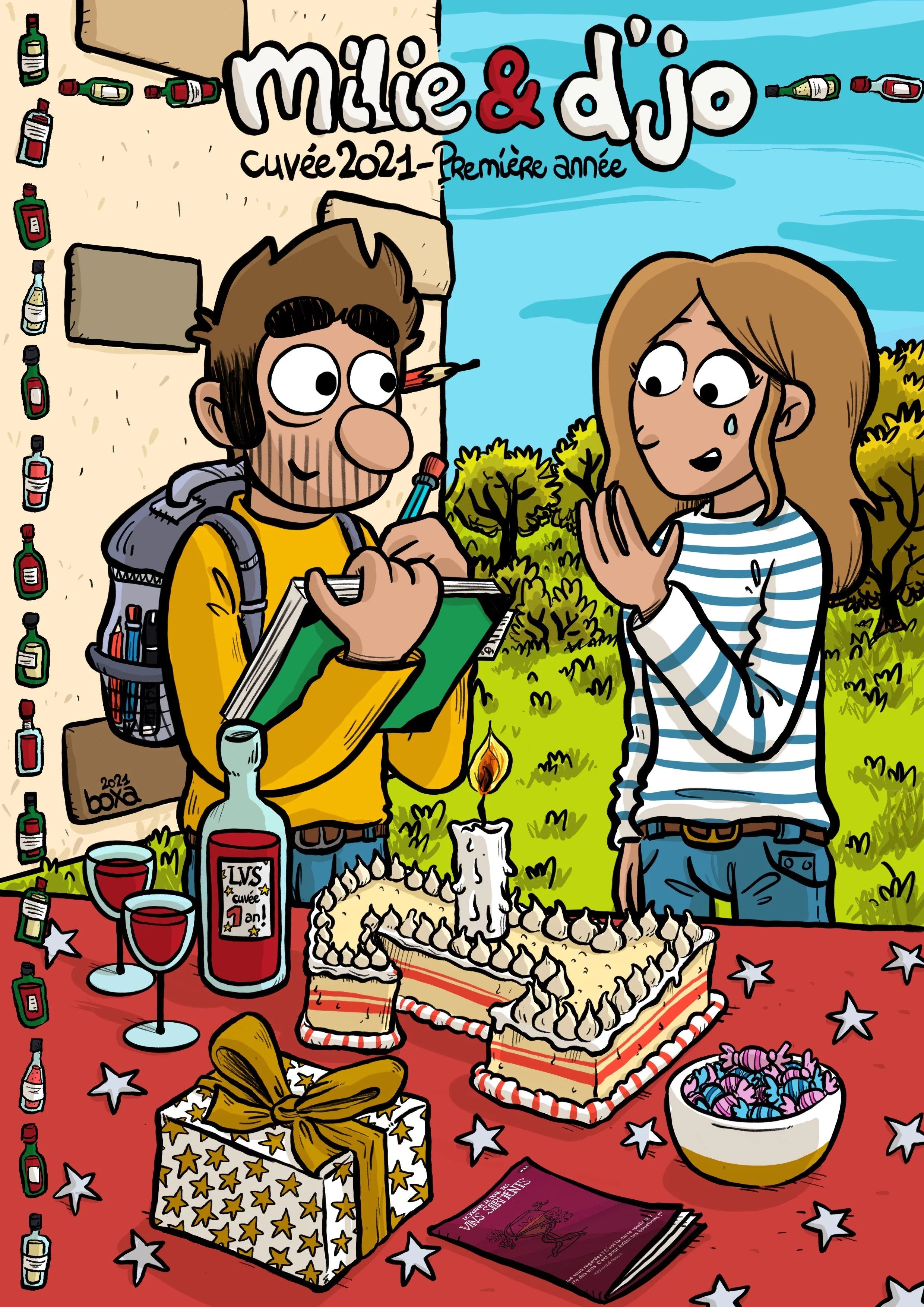 En plus de ces contributions, j’ai également illustré une page de bande dessinée mensuelle intégrée au journal de bord accompagnant chaque box de vin. Ces bandes dessinées offrent aux abonnés une vue originale et humoristique de la vie de Milie.
