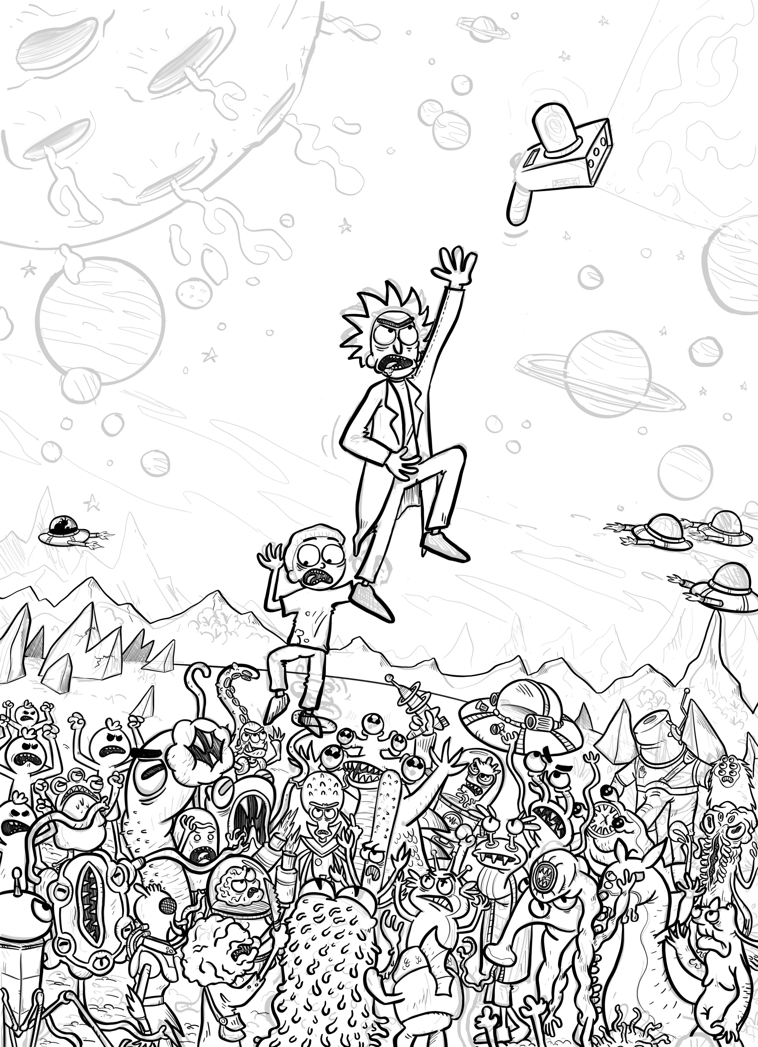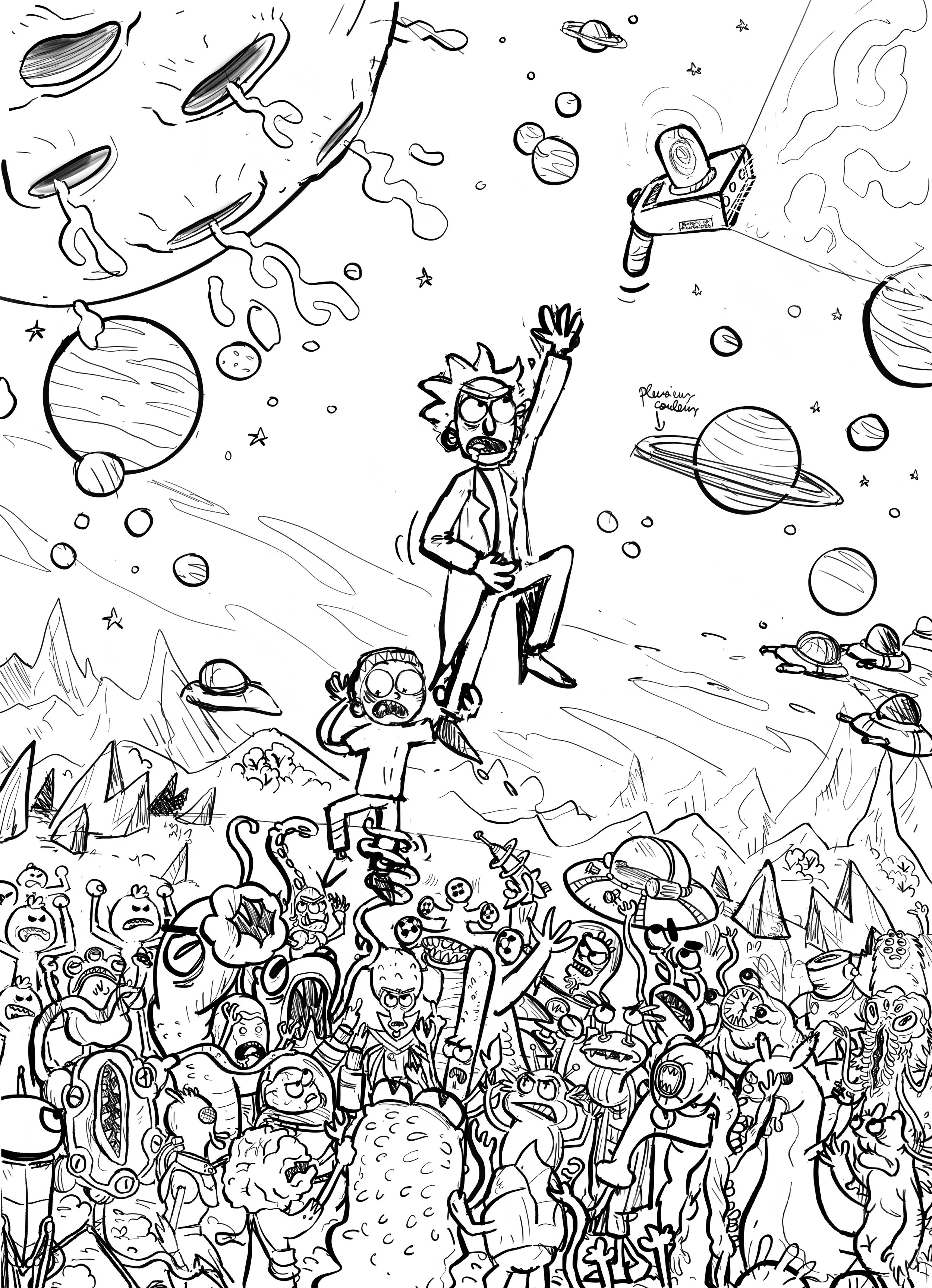 J’ai eu le privilège de participer à La Galerie Rick et Morty, une exposition éphémère organisée par Adult Swim, qui s’est tenue du 17 au 20 novembre 2022 au 99, rue du Temple, dans le 3ᵉ arrondissement de Paris. Cet événement gratuit a rassemblé dix artistes français pour réinterpréter l’univers déjanté de la série à travers divers médiums, dont la peinture, le dessin, la sculpture et la vidéo.