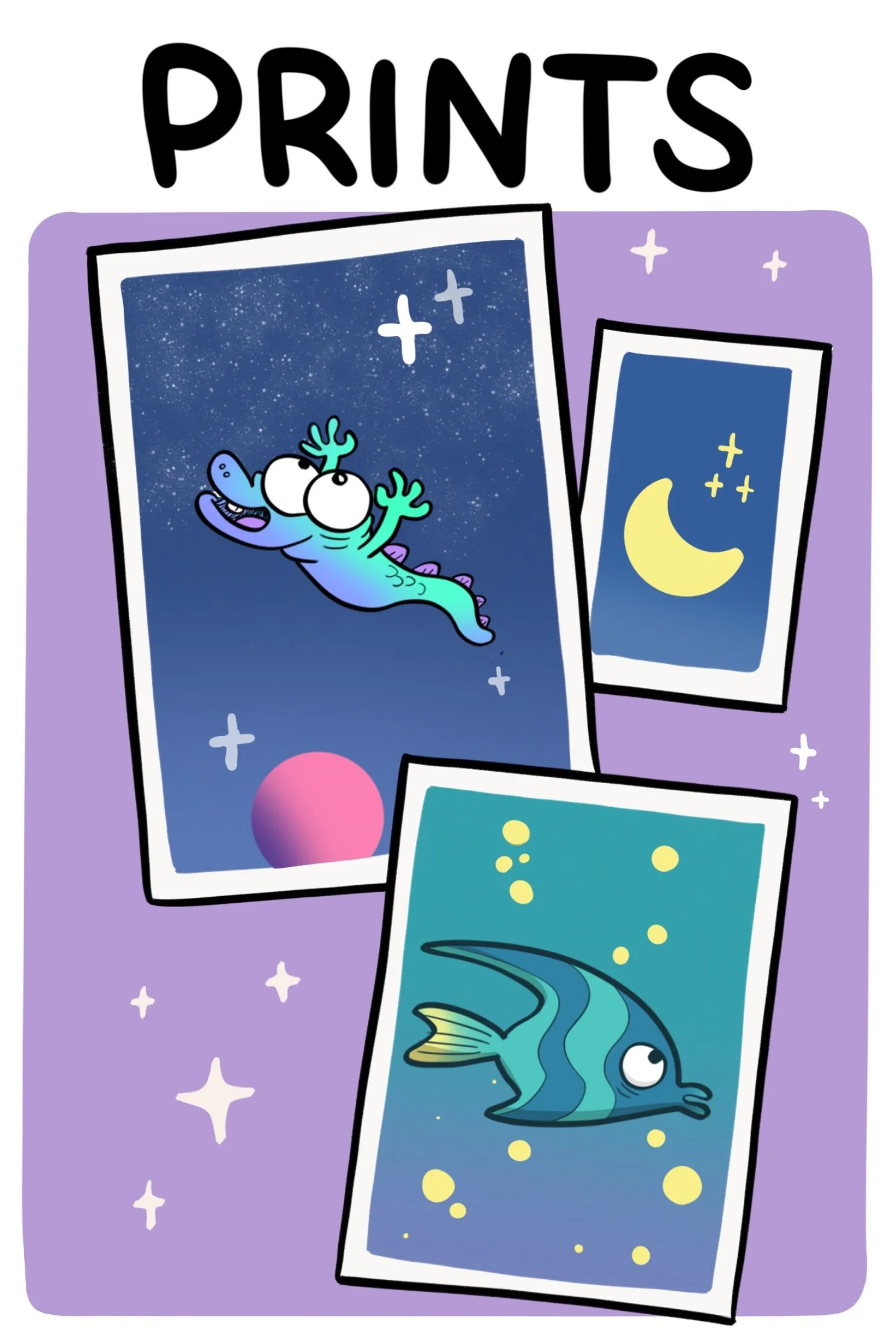 Découvre mon travail et mon univers à travers des collections d’illustrations, de tirages, de stickers, de cartes postales, de zines et d’objets créatifs régulièrement mis à jour.